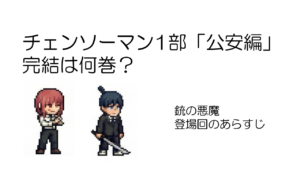 チェンソーマンの銃の悪魔や第一部最終決戦は、9巻途中から11巻で描かれています。 こちらの記事では、漫画チェンソーマンの9巻途中~11巻の各話のタイトルとあらすじを...