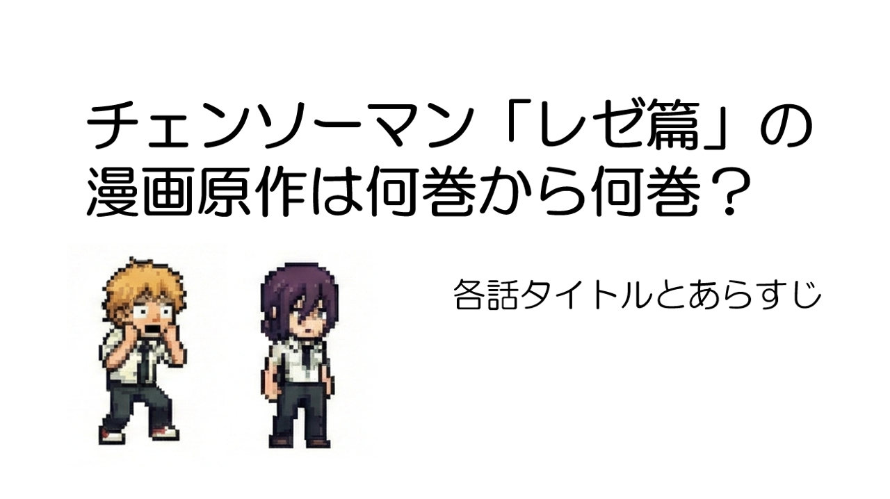 この記事では、チェンソーマンの刺客編について、解説します。記事後半で、単行本の巻ごとに「話数」「各話タイトル」「あらすじ」を一覧でまとめています。読み返した...